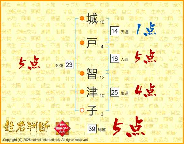 城戸智津子さんの総運は39画の5点!