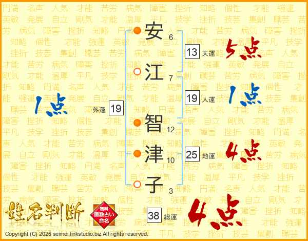 安江智津子さんの総運は38画の4点!