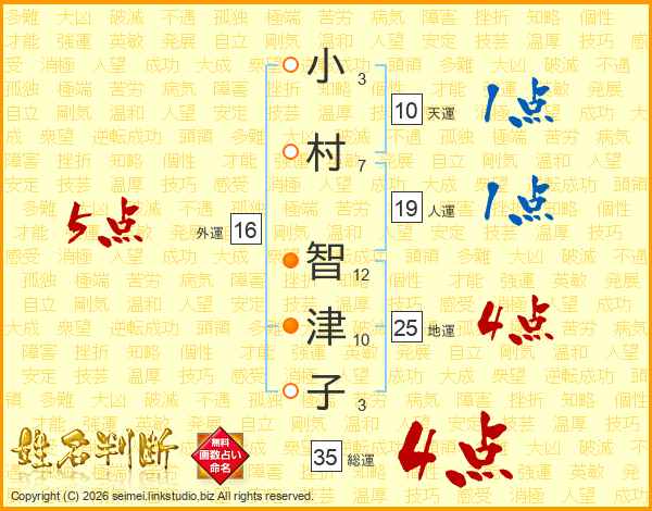 小村智津子さんの総運は35画の4点!