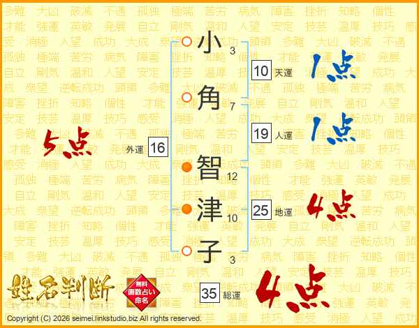 小角智津子さんの外運は16画の5点!