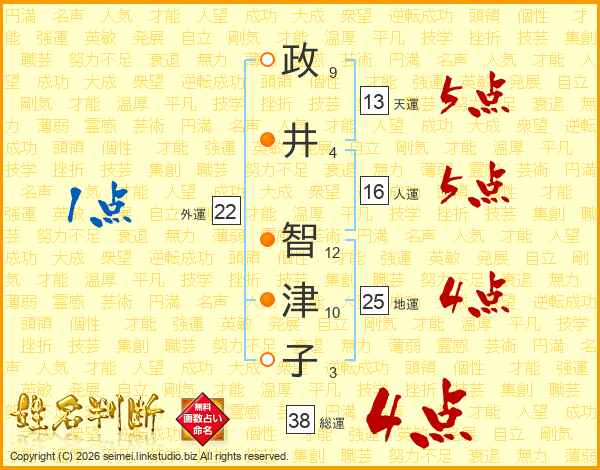 政井智津子さんの総運は38画の4点!