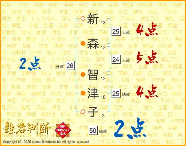 新森智津子さんの天運は25画の4点!