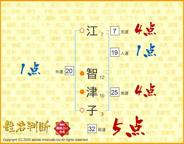 江智津子さんの総運は32画の5点!