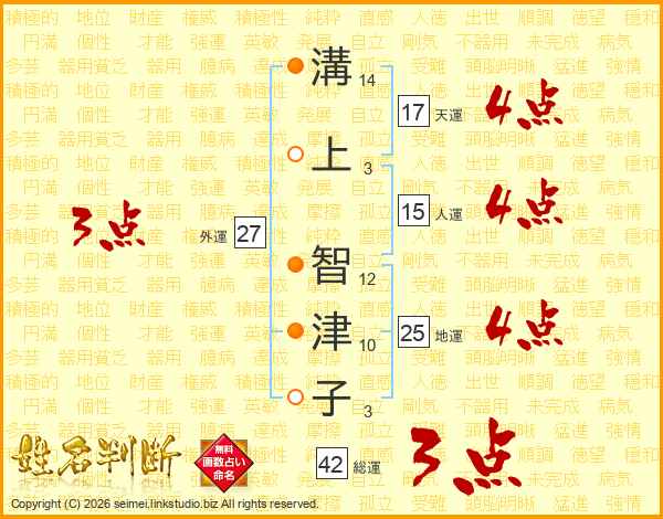 溝(14画)上(3画) 智(12画)津(10画)子(3画)