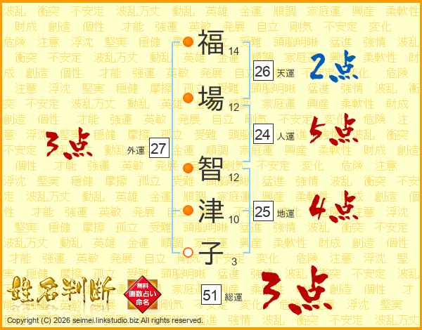 福(14画)場(12画) 智(12画)津(10画)子(3画)