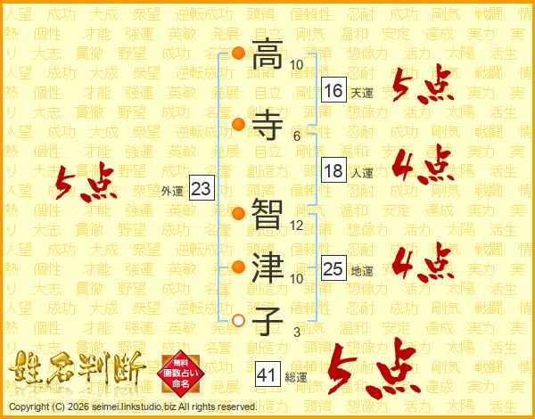 高寺智津子さんの総運は41画の5点!