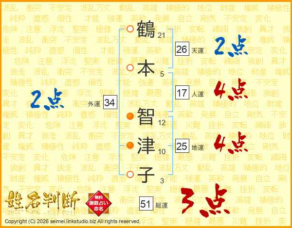 鶴本智津子さんの総運は51画の3点!