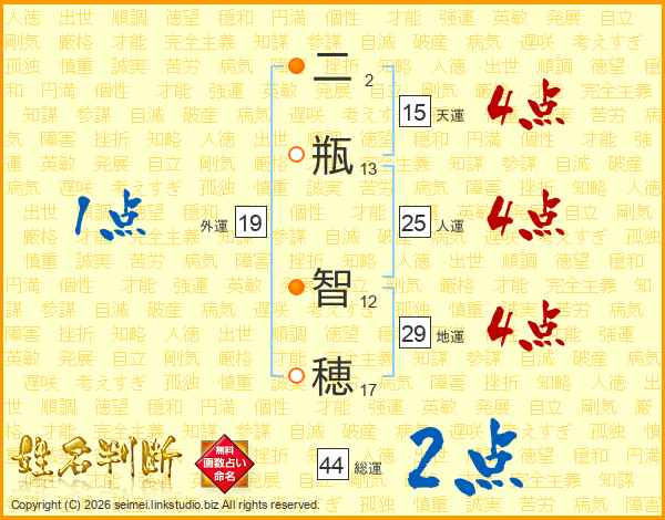 二瓶智穂さんの総運は44画の2点!