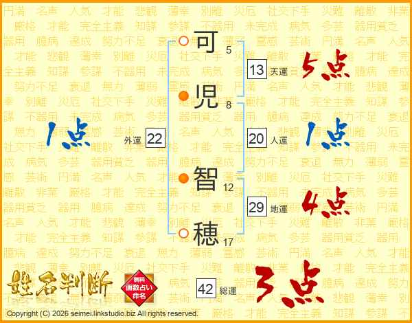 可(5画)児(8画) 智(12画)穂(17画)