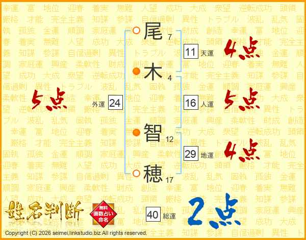 尾(7画)木(4画) 智(12画)穂(17画)