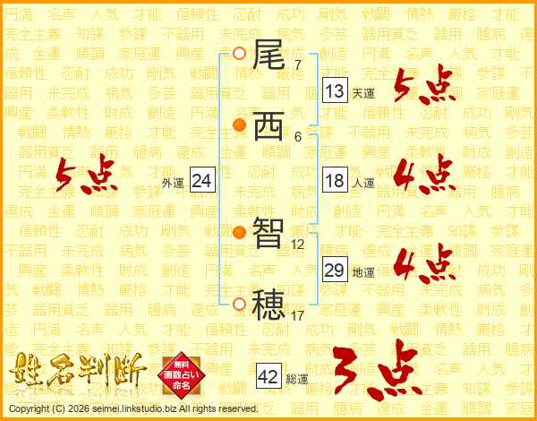 尾(7画)西(6画) 智(12画)穂(17画)