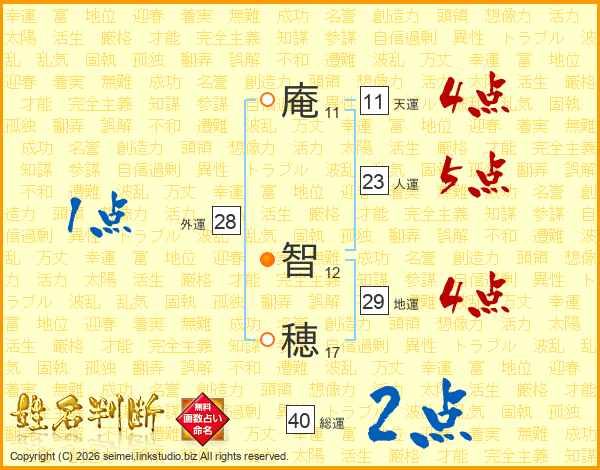 庵智穂さんの総運は40画の2点!