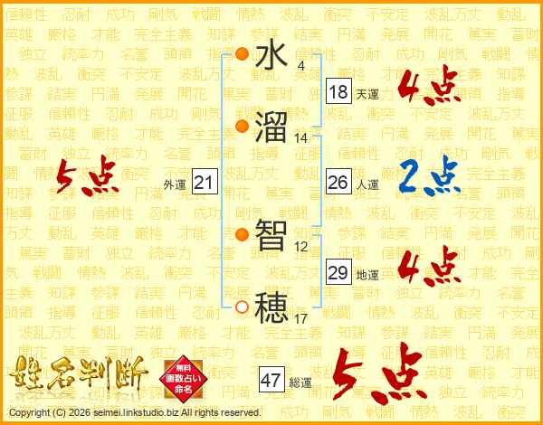 水溜智穂さんの総運は47画の5点!