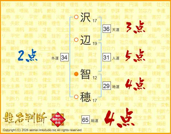 沢(17画)辺(19画) 智(12画)穂(17画)