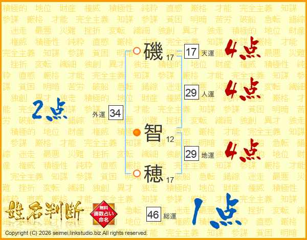 磯(17画) 智(12画)穂(17画)