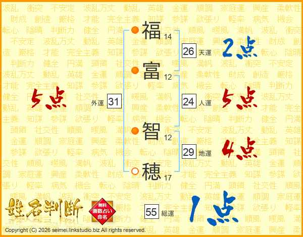 福(14画)富(12画) 智(12画)穂(17画)