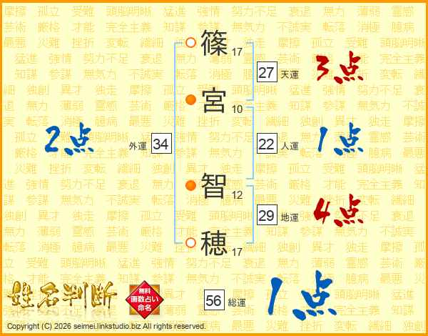 篠宮智穂さんの総運は56画の1点!