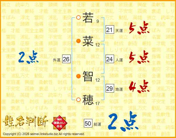 若菜智穂さんの外運は26画の2点!