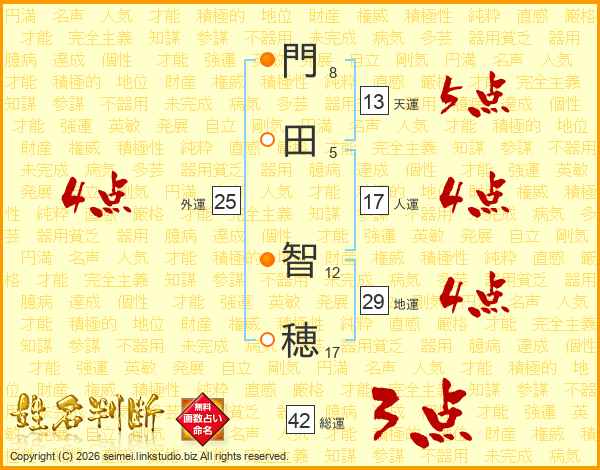 門(8画)田(5画) 智(12画)穂(17画)