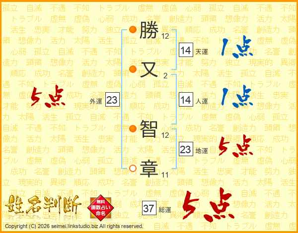 勝又智章さんの天運は14画の1点!