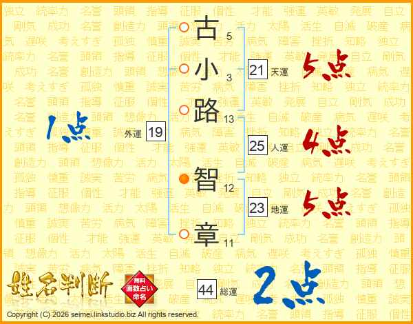 古小路智章さんの総運は44画の2点!
