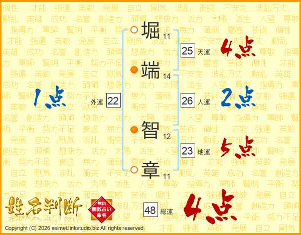 堀端智章さんの天運は25画の4点!