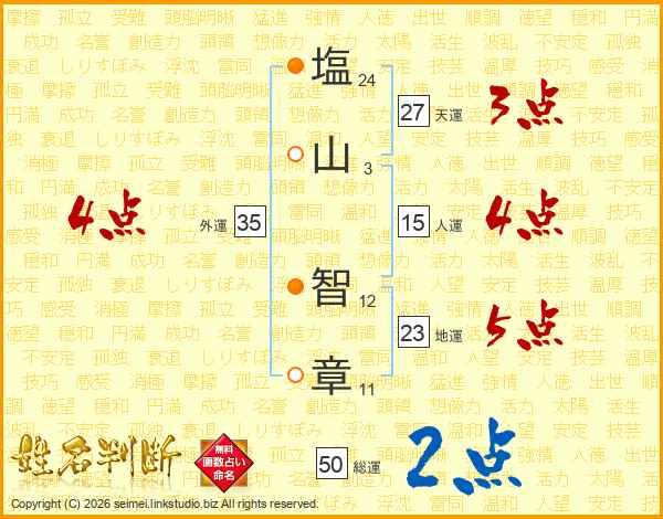 塩(24画)山(3画) 智(12画)章(11画)