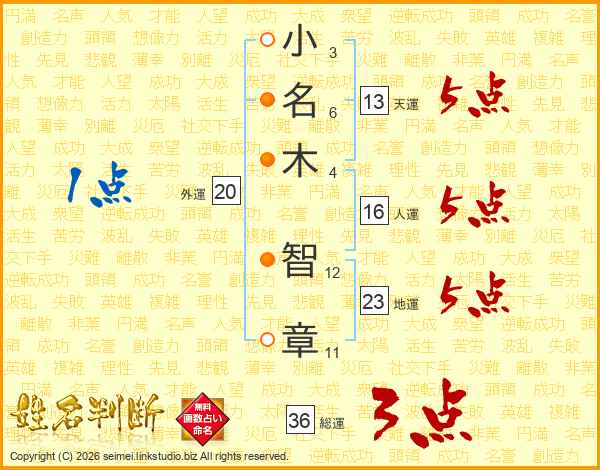 小名木智章さんの天運は13画の5点!