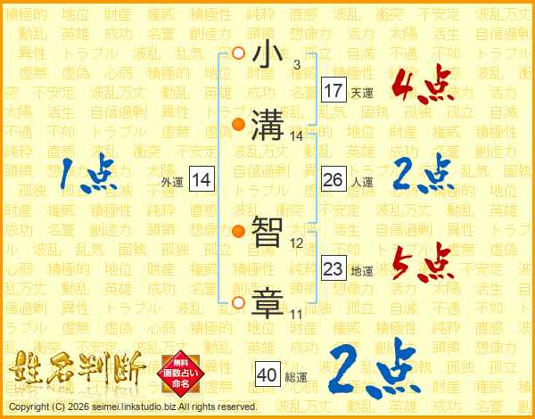 小溝智章さんの人運は26画の2点!