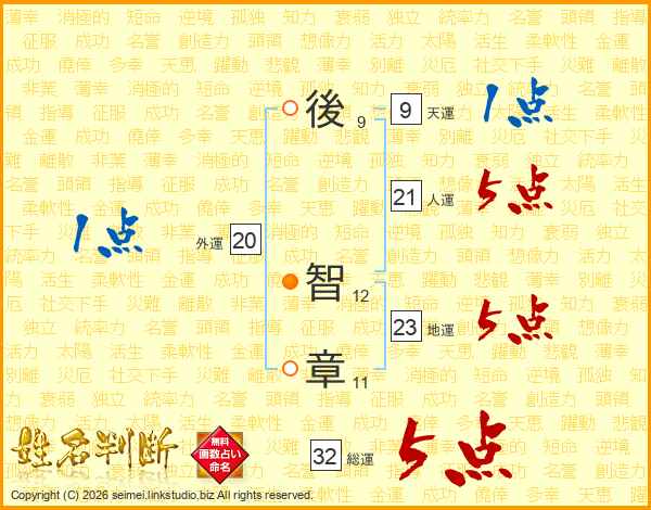後智章さんの総運は32画の5点!
