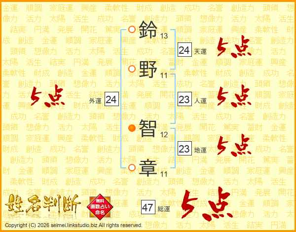 鈴野智章さんの総運は47画の5点!