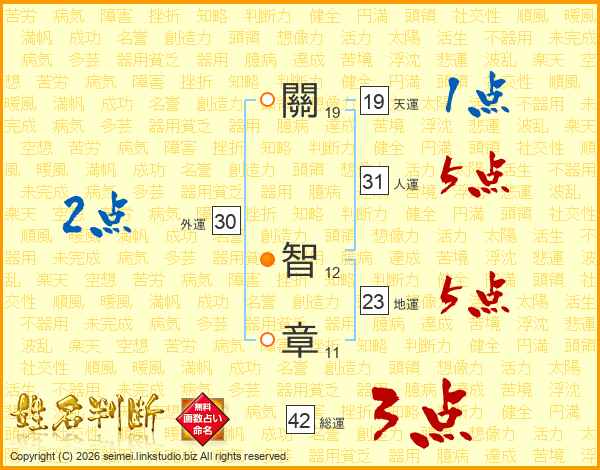 關智章さんの人運は31画の5点!