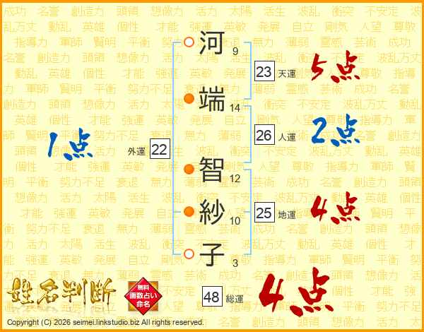 河端智紗子さんの総運は48画の4点!