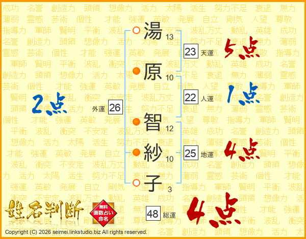 湯原智紗子さんの総運は48画の4点!