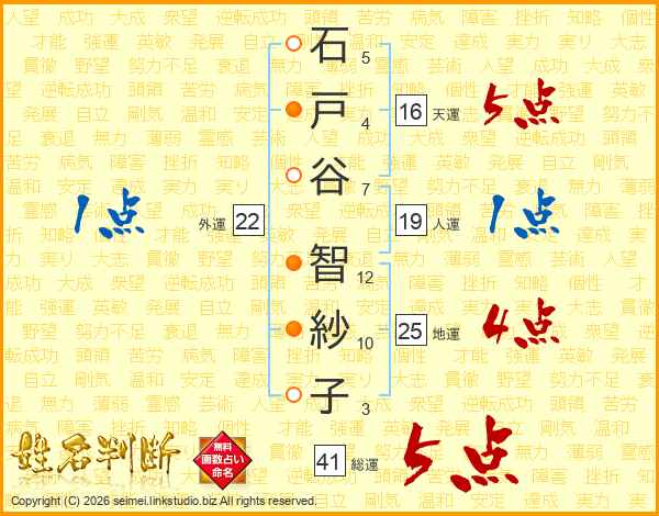 石戸谷智紗子さんの地運は25画の4点!