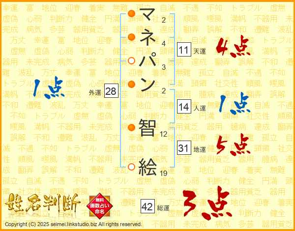 マ(2画)ネ(4画)パ(3画)ン(2画) 智(12画)絵(19画)