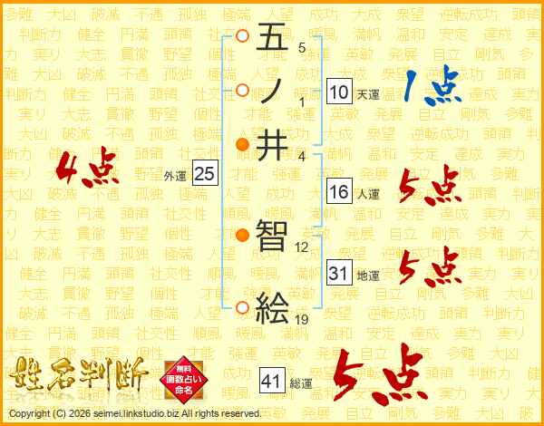 五(5画)ノ(1画)井(4画) 智(12画)絵(19画)