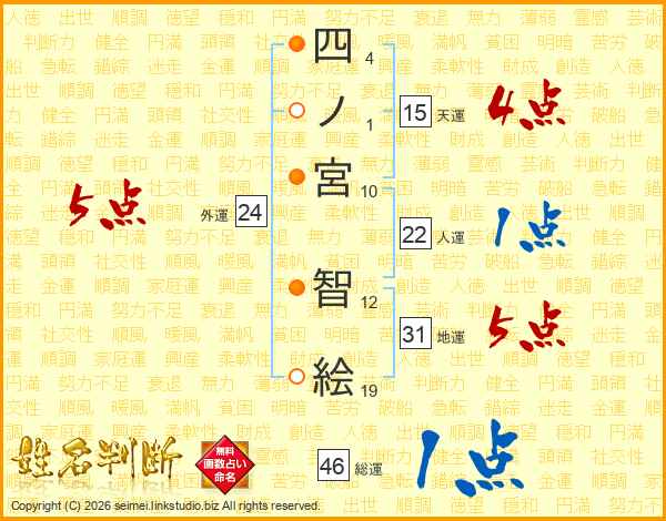 四ノ宮智絵さんの総運は46画の1点!