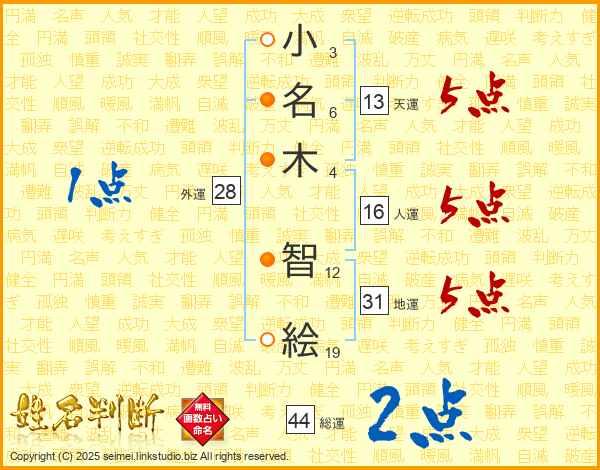 小(3画)名(6画)木(4画) 智(12画)絵(19画)