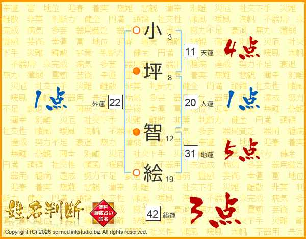 小坪智絵さんの人運は20画の1点!