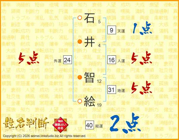 石(5画)井(4画) 智(12画)絵(19画)