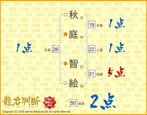 秋(9画)庭(10画) 智(12画)絵(19画)