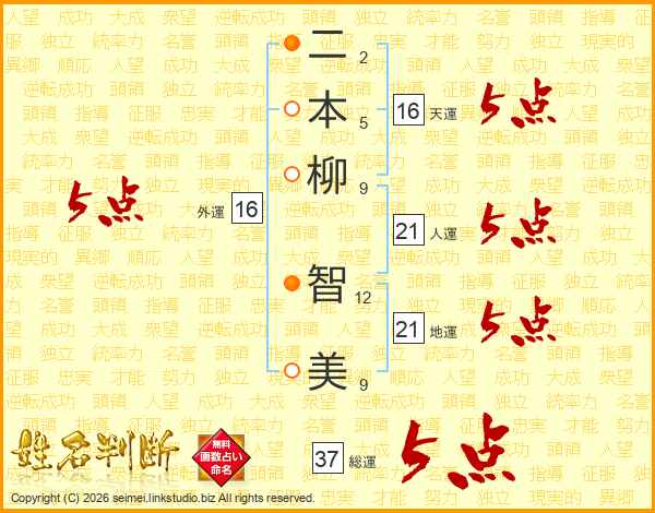 二本柳智美さんの総運は37画の5点!