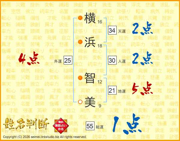 横(16画)浜(18画) 智(12画)美(9画)