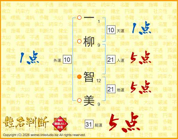 一柳智美さんの地運は21画の5点!