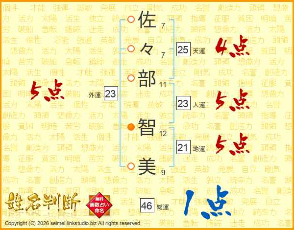 佐(7画)々(7画)部(11画) 智(12画)美(9画)
