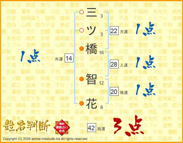 三ツ橋智花さんの外運は14画の1点!