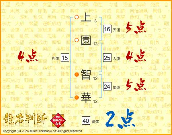 上園智華さんの人運は25画の4点!