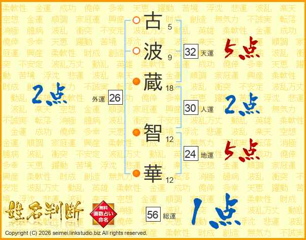 古(5画)波(9画)蔵(18画) 智(12画)華(12画)