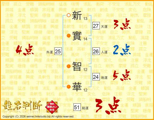 新實智華さんの人運は26画の2点!